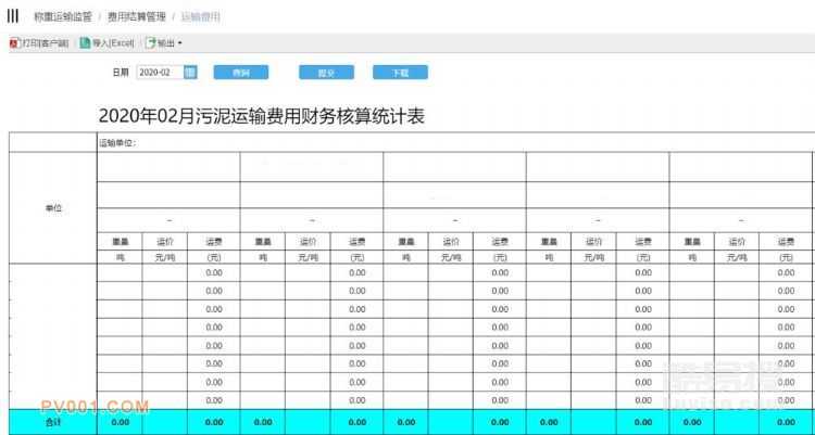 實(shí)現(xiàn)對(duì)污泥運(yùn)輸費(fèi)用、處置費(fèi)用的自動(dòng)結(jié)算,主要功能包括:運(yùn)輸費(fèi)用結(jié)算管理、處置費(fèi)用結(jié)算管理、服務(wù)費(fèi)管理、服務(wù)費(fèi)統(tǒng)計(jì)匯總。