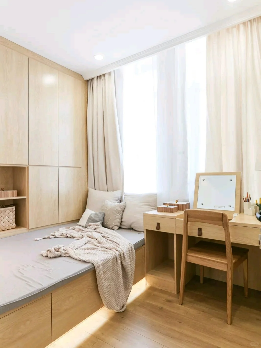 當(dāng)你擁有一個(gè)面積不大的房間,想做次臥,或是兒童房時(shí),是不是下意識(shí)就想到了做榻榻米? ?? 在鋪設(shè)的時(shí)候,可以注意下面這幾點(diǎn)。 1、有較多人挑選在榻榻米旁邊定制邊柜,來(lái)加強(qiáng)儲(chǔ)物??梢缘脑挘灰陂介矫變蛇叾甲龉褡?,顯得太擁擠,最好沿著榻榻米一面,做通頂大柜子。 . 2、如果榻榻米要鋪設(shè)在臥室,盡量不要替代真正的床。臨時(shí)當(dāng)客房,睡一兩個(gè)晚上還是可以的,睡得時(shí)間長(zhǎng),就比較難受了。 . 3、臥室有飄窗,把飄窗改造為榻榻米也是一個(gè)不錯(cuò)的挑選。 . 4、老人房、兒童房最好不要用榻榻米,一般地臺(tái)的高度在40-55cm左右,加高地臺(tái)所制造的高低差,對(duì)老人和小孩都不方便。 . 5、地臺(tái) 軟墊。已經(jīng)裝了榻榻米地臺(tái)的朋友,也不用著急,鋪上布藝軟墊,或者乳膠床墊,都可以增加睡眠時(shí)的舒適度。 . 很多時(shí)候,我們想要榻榻米,可能只是想要一個(gè)可以隨心所欲的多功能區(qū)域。 . 但仍然需要根據(jù)實(shí)際需求去考慮,而不是盲目的跟風(fēng)設(shè)計(jì)。 ? Tips: ①榻榻米地臺(tái)雖然很能收納,但使用不太方便,最好還有柜子備用。 . ②想要榻榻米和地面齊平,裝修時(shí)就要預(yù)留高度,也會(huì)增加人工費(fèi)用。 . ③地臺(tái)搭建的板材質(zhì)量得好,人造板材更穩(wěn)定,注意甲醛問(wèn)題。 . ④榻榻米地臺(tái)的五金零件一定要用質(zhì)量好的氣壓五金件。 . ⑤不建議做升降桌,桌下容易成為衛(wèi)生死角