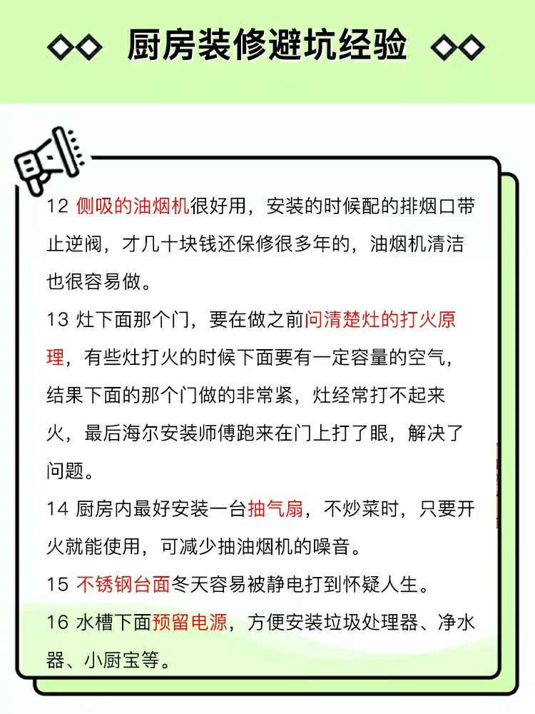 廚房裝修避坑的20條經(jīng)驗(yàn),避坑指南