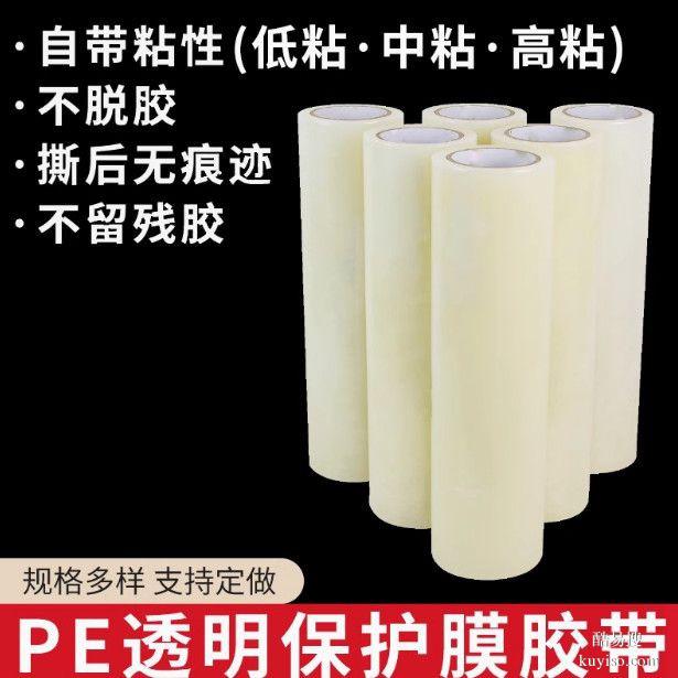 PE保護(hù)膜在實(shí)際使用中經(jīng)常面臨各種環(huán)境考驗(yàn),其耐候性和化學(xué)穩(wěn)定性直接關(guān)系到保護(hù)效果是否持久、撕膜是否順利。耐溫性是首要的耐候指標(biāo)。普通PE保護(hù)膜的使用溫度范圍為-10℃至60℃。在低于-10℃時(shí),PE薄膜會變硬變脆,膠粘劑初粘力大幅下降,導(dǎo)致貼不牢;在高于60℃時(shí),薄膜可能軟化變形,膠粘劑可能發(fā)生遷移、滲入被貼物微孔,造成殘膠。針對特殊需求,我們開發(fā)了耐低溫型PE膜(可耐-30℃)和耐高溫型PE膜(可耐80-100℃)。耐高溫PE膜采用交聯(lián)型丙烯酸膠粘劑,在高溫下仍能保持內(nèi)聚力,不軟化流掛。例如,用于夏季戶外存放的鋁板、用于烘烤工序前的半成品保護(hù)等場景??棺贤饫匣阅軐τ趹敉獯娣呕蚴褂玫谋Wo(hù)膜至關(guān)重要。PE基材本身對紫外線敏感,長期暴露在陽光下會發(fā)生光氧化降解,表現(xiàn)為薄膜變黃、變脆、粉化。添加抗紫外線吸收劑(UV absorber)和受阻胺光穩(wěn)定劑(HALS)可以顯著延緩這一過程。經(jīng)過抗紫外改性的PE保護(hù)膜,可在戶外使用6-12個(gè)月而不明顯脆化。這類膜常用于建筑幕墻板的工地保護(hù)、太陽能光伏組件的周轉(zhuǎn)保護(hù)等。耐化學(xué)腐蝕性方面,PE材料本身具有良好的耐酸、耐堿、耐鹽霧性能,但不同膠粘劑對化學(xué)品的耐受性差異較大。丙烯酸膠粘劑對大多數(shù)化學(xué)品穩(wěn)定,而橡膠型膠粘劑遇到油類、有機(jī)溶劑可能溶脹或失去粘性。因此,如果被保護(hù)材料表面殘留有防銹油、切削液或脫模劑,建議先清潔表面再貼膜,或選用耐油型PE保護(hù)膜。防靜電性能是另一個(gè)重要化學(xué)物理特性。在電子、光學(xué)、精密儀器行業(yè),靜電會吸附灰塵,甚至擊穿敏感元件??轨o電PE保護(hù)膜通過在薄膜中添加抗靜電劑或涂布抗靜電層,使表面電阻降至10^6-10^9Ω,從而快速導(dǎo)走靜電荷。這類膜專門用于液晶屏幕、手機(jī)蓋板、光伏電池片等精密部件的保護(hù)。